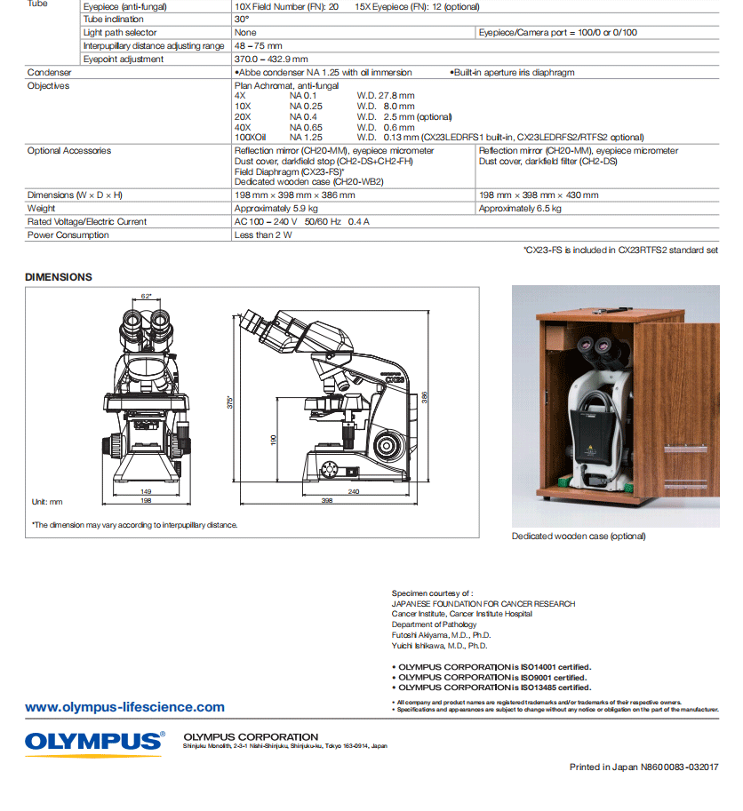 產品名稱: 奧林巴斯 Olympus CX23 正置顯微鏡