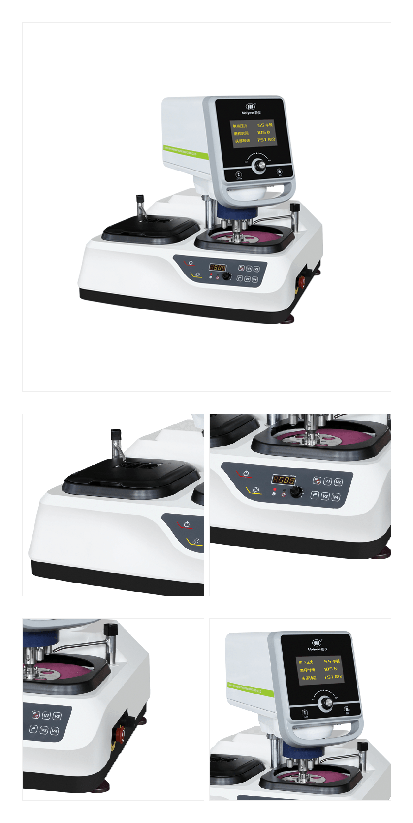 本機采用了微處理器控制系統,使得磨拋盤、磨拋頭的轉速實現無級可調,制樣壓力、時間設定直觀、便捷。操作者只需更換磨拋盤或者金相砂紙和拋光織物即可完成磨、拋工序的操作,從而使本機展現了更加廣泛的應用性。本機具備磨拋盤旋轉方向可任意選擇、磨拋盤可快速更換;多試樣夾持器和氣動單點加載;磨料自動配送(分液器可選配)等功能,還具有轉動平穩、安全可靠、噪音低及采用鑄鋁底座增加了磨拋的剛性等特點。
