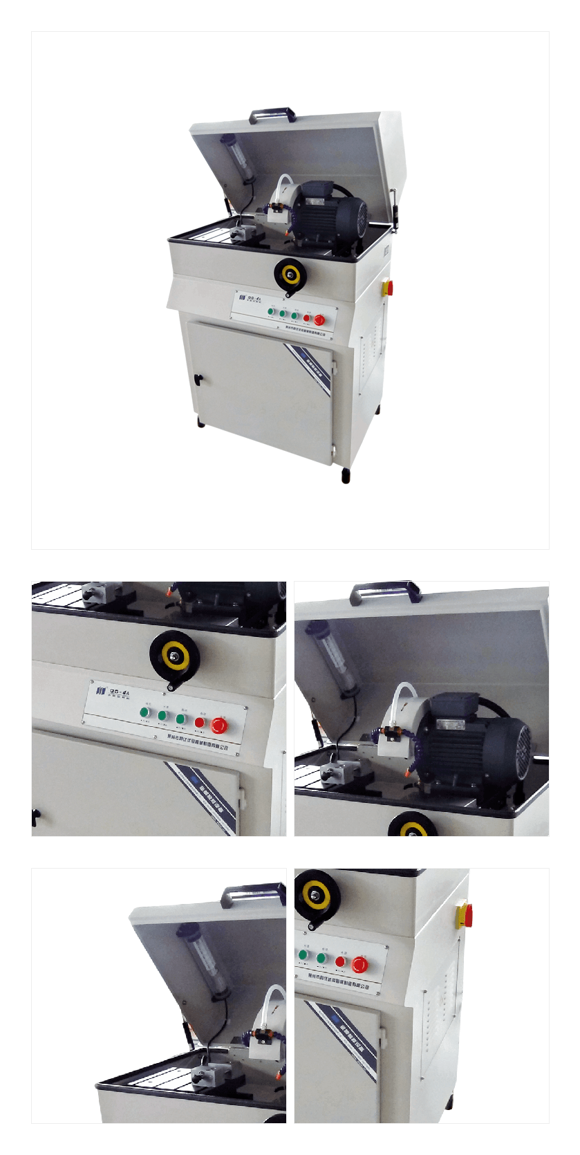 本機適用于切割一般金相試樣材料,以便觀察材料金相、巖相組織。采用雙罩殼全封閉結構。可保證使用者在較為安全狀態下進行試樣切割。本機帶有強冷卻系統。使用配置好的冷卻液可帶走切割時所產生的熱量,避免試樣過熱而燒傷試樣組織。該機使用方便、安全可靠,是工廠、科研單位實驗室制作試樣必備的設備之一。