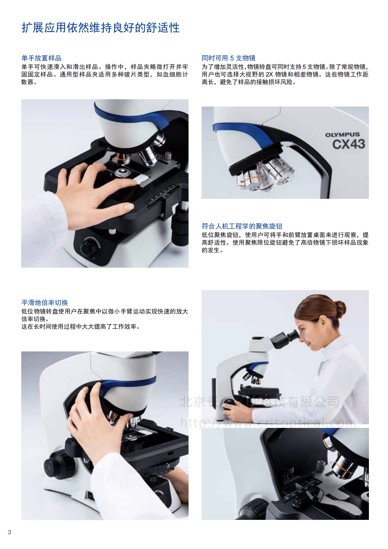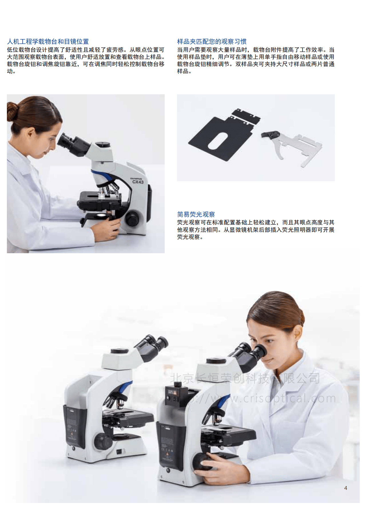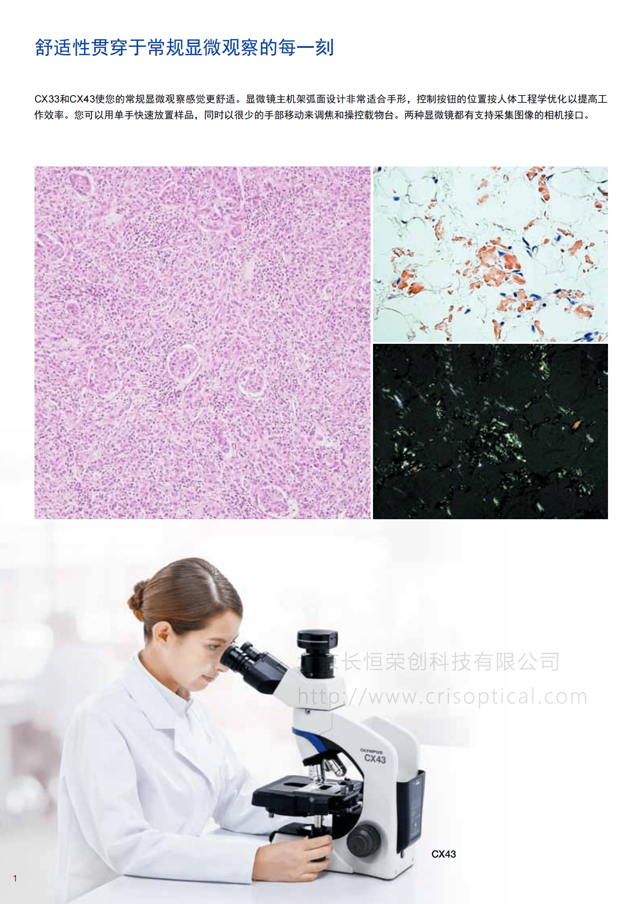 人性化設計: CX33顯微鏡設計人性化,包括舒適的眼鏡、可調節的觀察角度和機械臺的平滑移動,提高用戶的使用體驗。